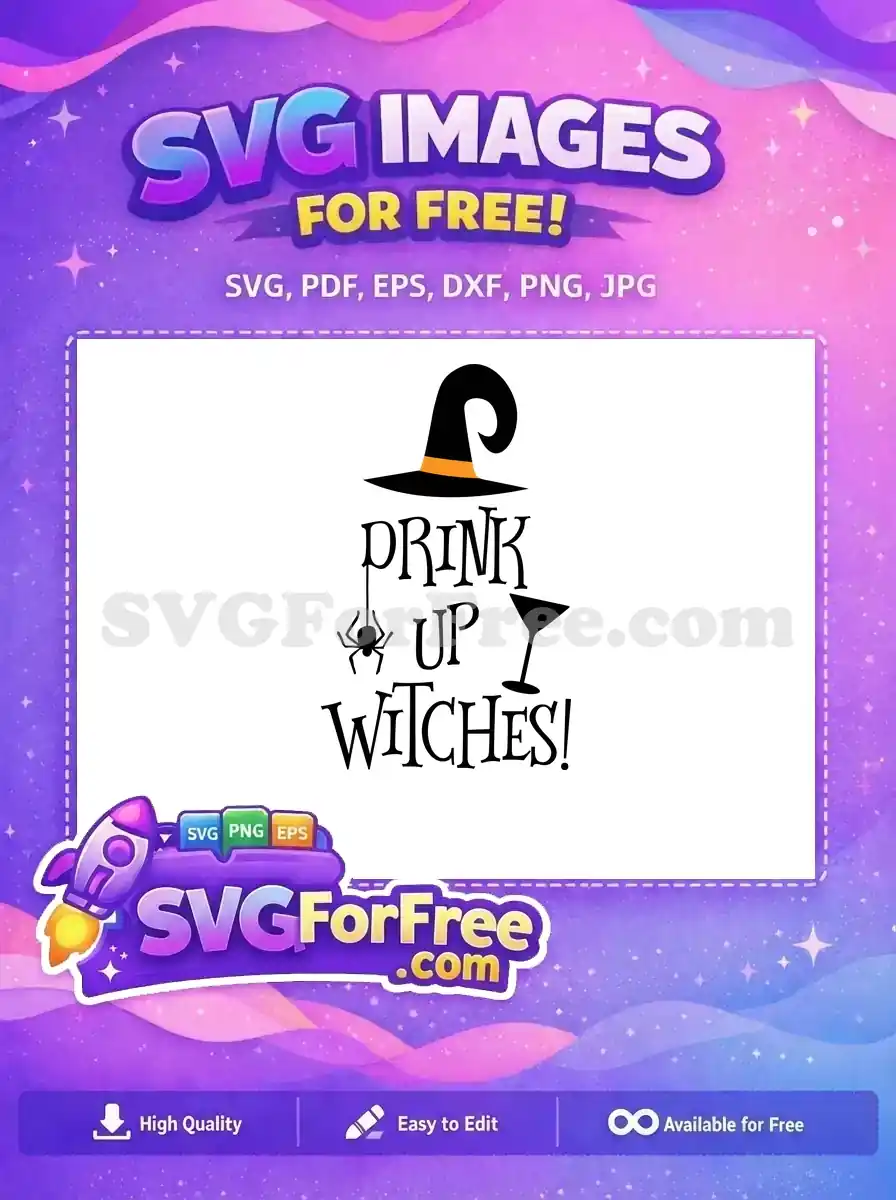 Free Witch Hat Free Spider Martini Prink Up Free SVG – Instant Download