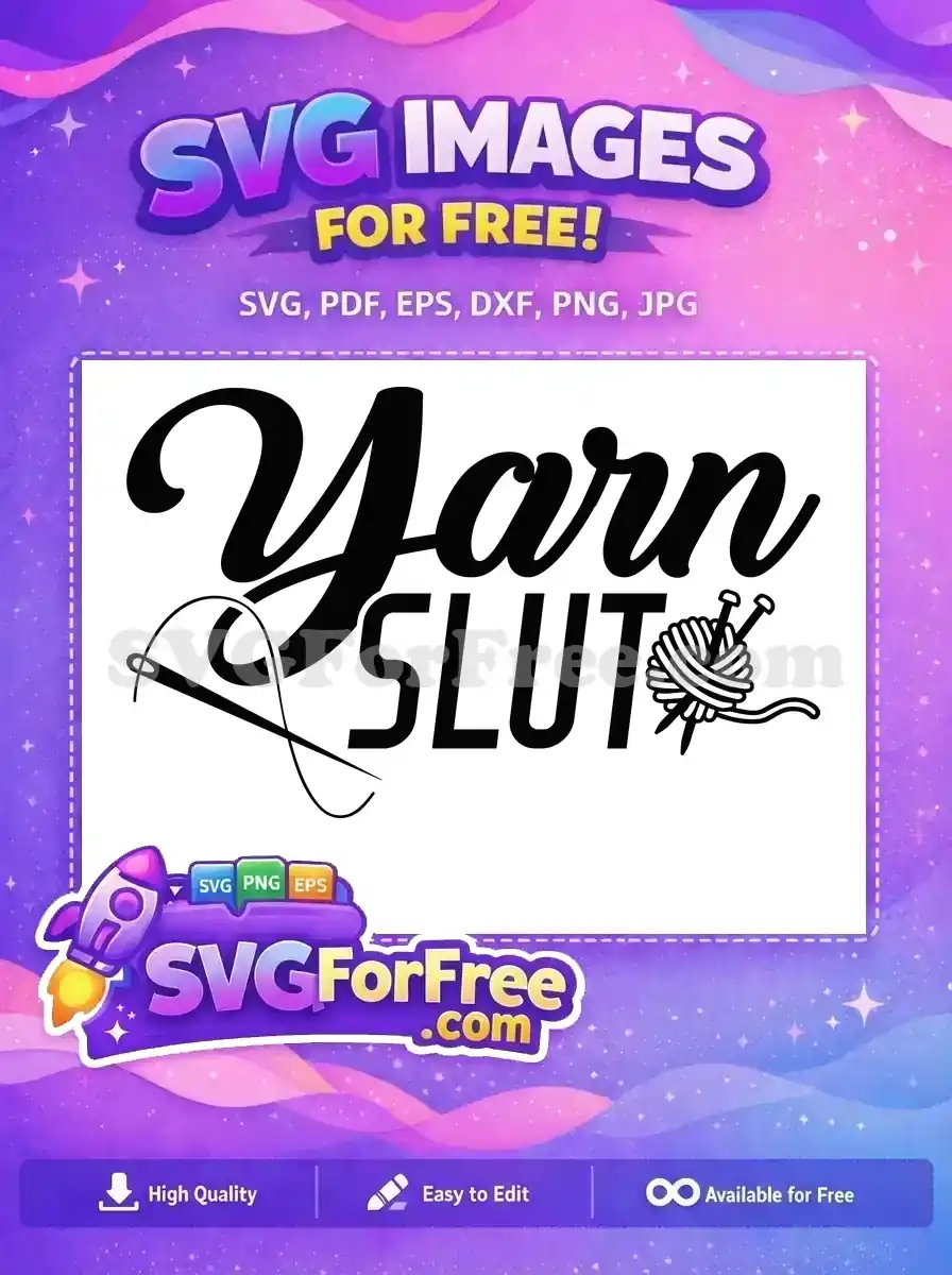 A bold and humorous ‘Yarn Slut’ design in a prominent script font. A free, edgy vector for yarn lovers.