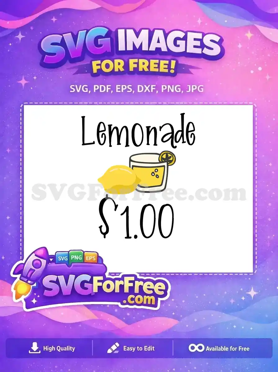 A lemonade stand price graphic showing a glass of lemonade next to the price “$1.00”. A free vector file.