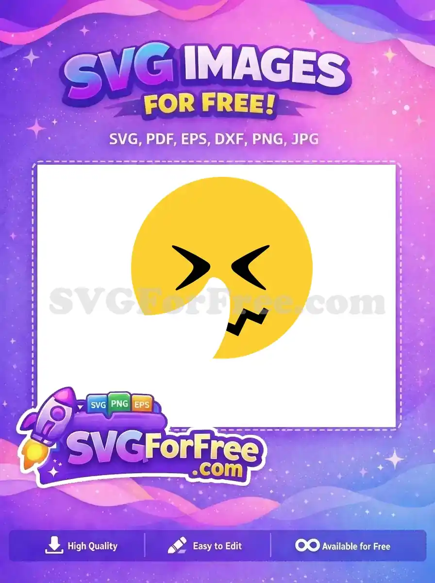 Free Yellow Sneezing Face Free Squinted Eyes Zigzag Mouth Emoji Free SVG – Instant Download