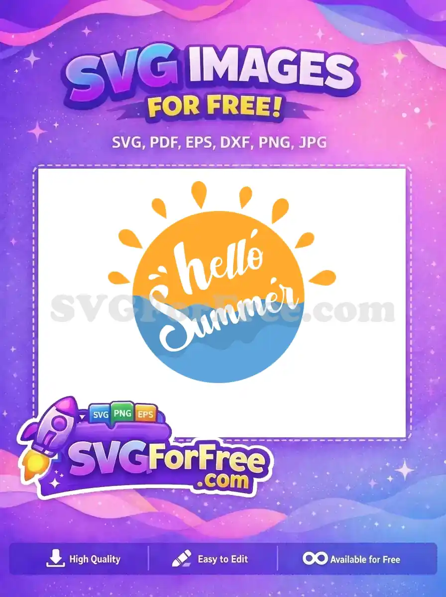Free Yellow Sun Free Blue Wave Hello Summer Free SVG – Instant Download