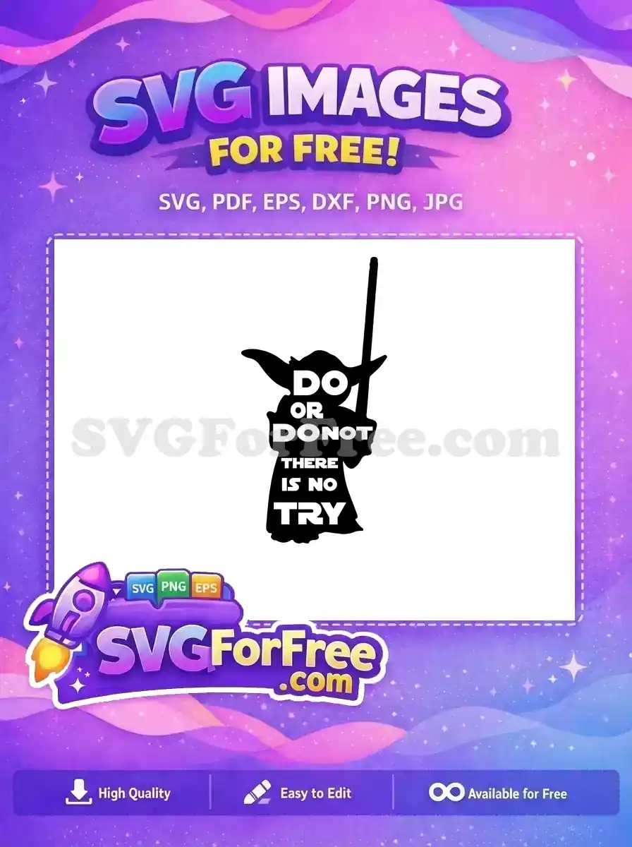 A different take on the “Do or do not” quote, with Yoda’s silhouette and staff, a free vector design.